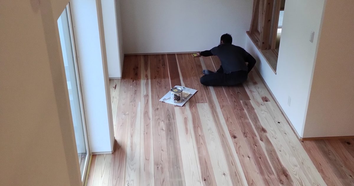 今日は引き渡しイベントと同時に自慢の無垢床にワックス塗ってという一日。